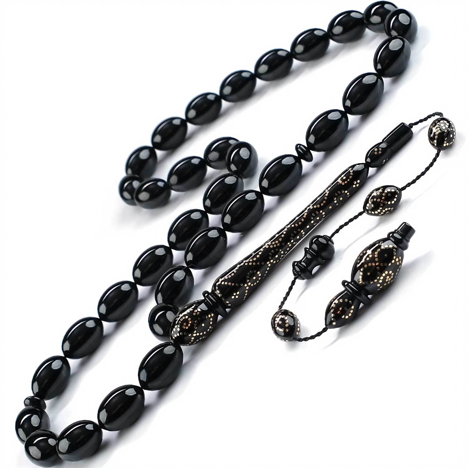 Ustaların Eseri Altın İşlemeli Erzurum Oltu Taşı Tesbih